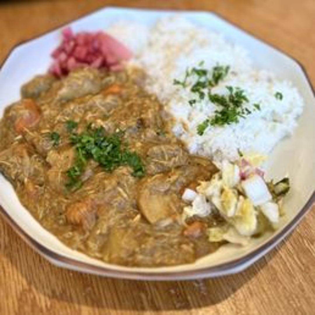 Aromatic curry featuring fresh crab meat in a flavorful sauce. The curry is likely prepared with a blend of spices, coconut milk, and vegetables, creating a rich and savory dish.