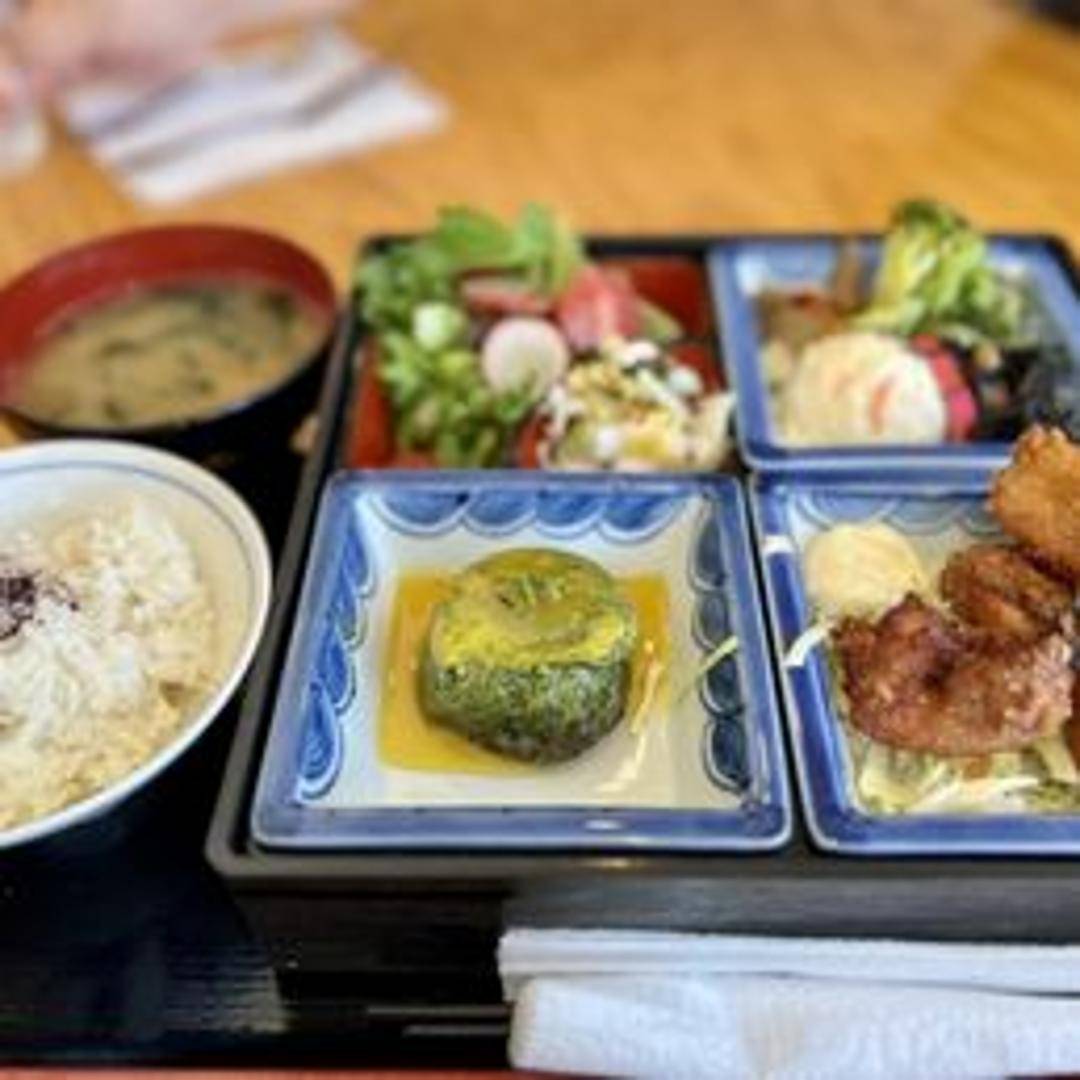 A rotating selection of chef's choice Japanese dishes in a convenient bento box format. Features fresh, seasonal ingredients and a variety of flavors. Please inquire about today's offerings. Typically includes [Give examples of common items, e.g., protein, vegetables, rice, and pickled elements].
