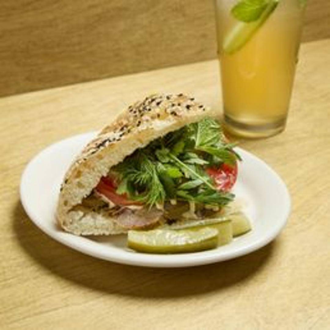 A flavorful sandwich featuring thinly sliced, tender beef tongue, prepared with complementary toppings and sauces on artisanal bread. Expect a savory and rich experience.