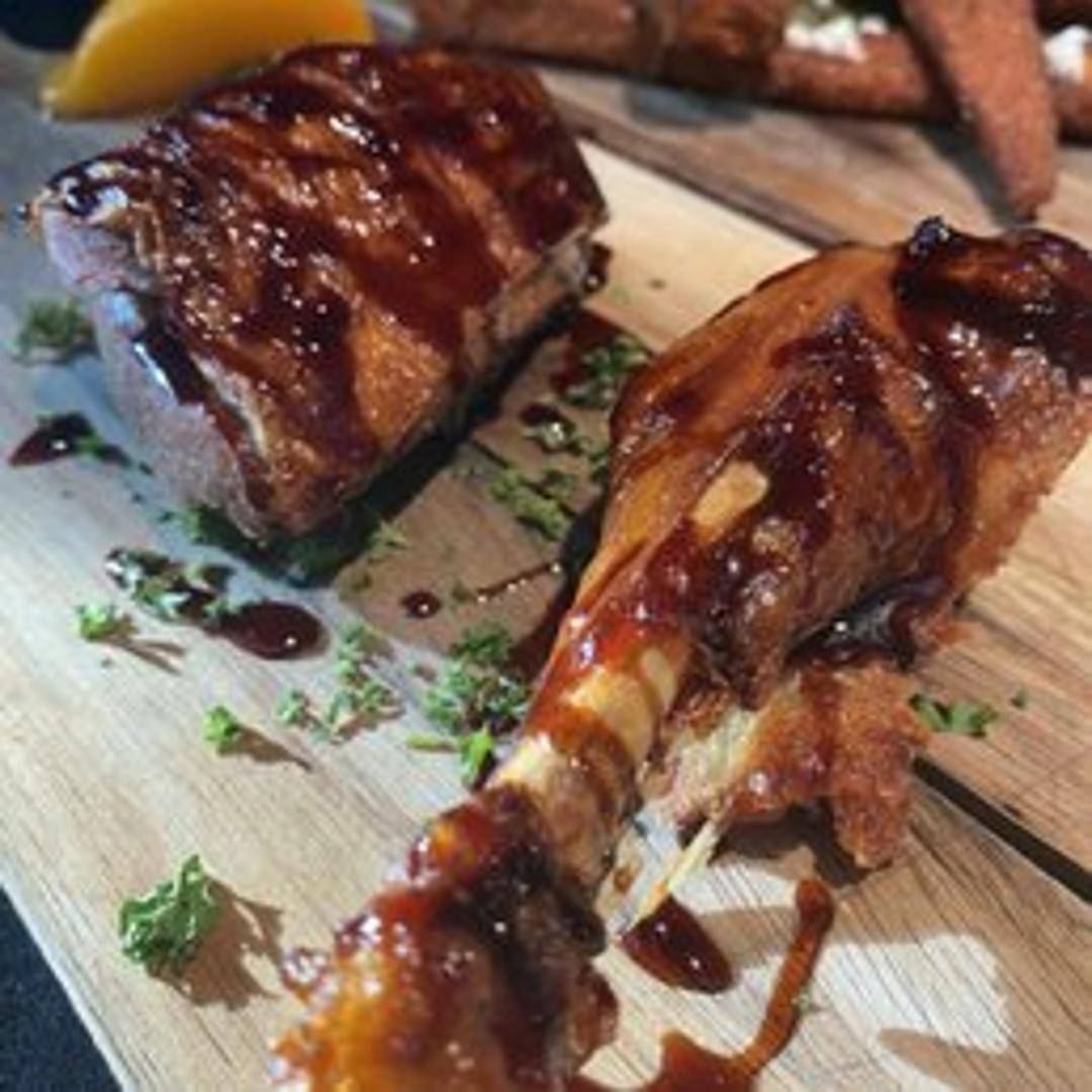 Succulent roasted duck, prepared with Spanish-inspired spices and herbs. Served with a crispy skin and tender meat, often accompanied by a complementary sauce or garnish.