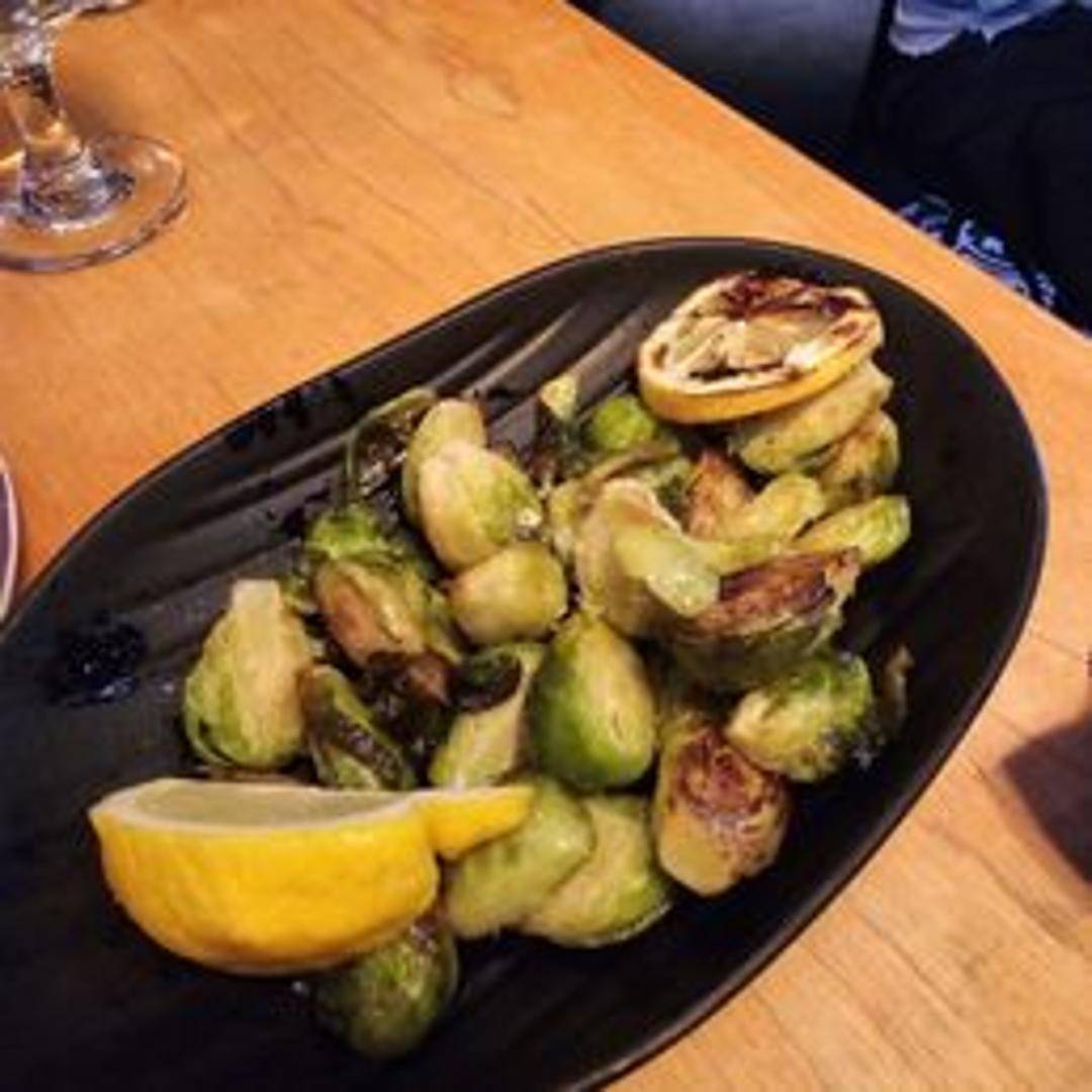 Crispy Brussels sprouts, tossed in a sweet and savory balsamic glaze, garnished with toasted almonds. (May contain traces of nuts).