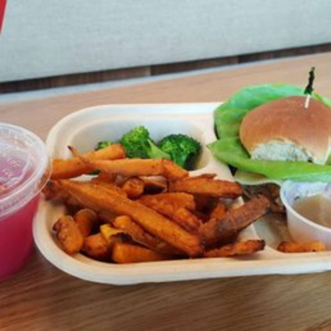 A plant-based burger patty, typically served on a toasted bun with your choice of toppings and sauces. Expect fresh ingredients like lettuce, tomato, onion, and pickles. Common components of the patty may include beans, grains, and vegetables. Availability of cheese is likely.