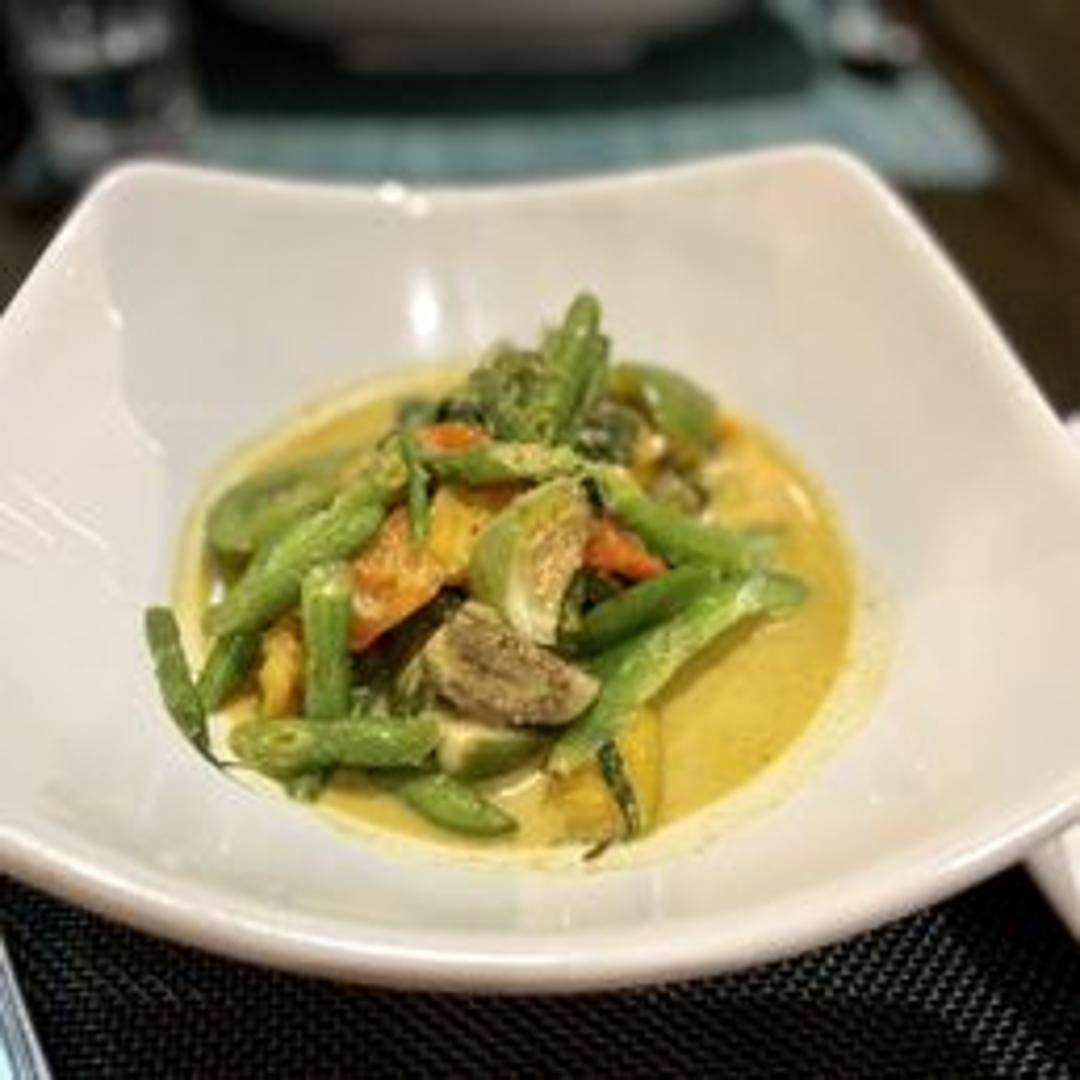 A classic Thai delight, our Green Curry features a vibrant, aromatic green chili paste simmered to perfection with rich coconut milk. This creamy and subtly spicy curry is enriched with bamboo shoots, crisp bell peppers, and fragrant Thai basil, offering a harmonious blend of sweet and savory notes. Served with your choice of protein and accompanied by fluffy jasmine rice.