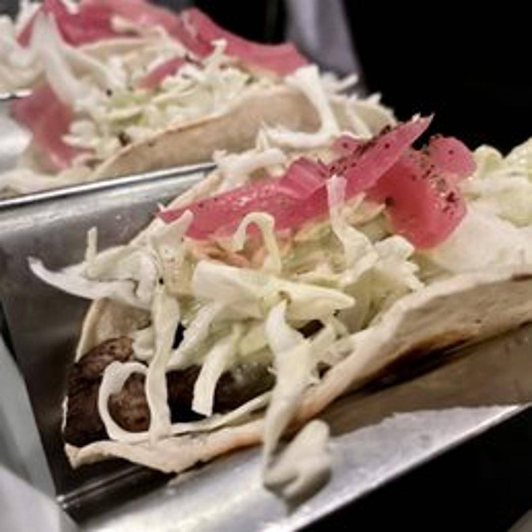An innovative fusion dish combining tender, aromatic shawarma-spiced meat, slow-roasted to perfection, and nestled into warm corn tortillas. Each taco is generously topped with fresh herbs, a creamy tahini drizzle, and vibrant pickled vegetables, creating a harmonious blend of Middle Eastern and Mexican flavors.
