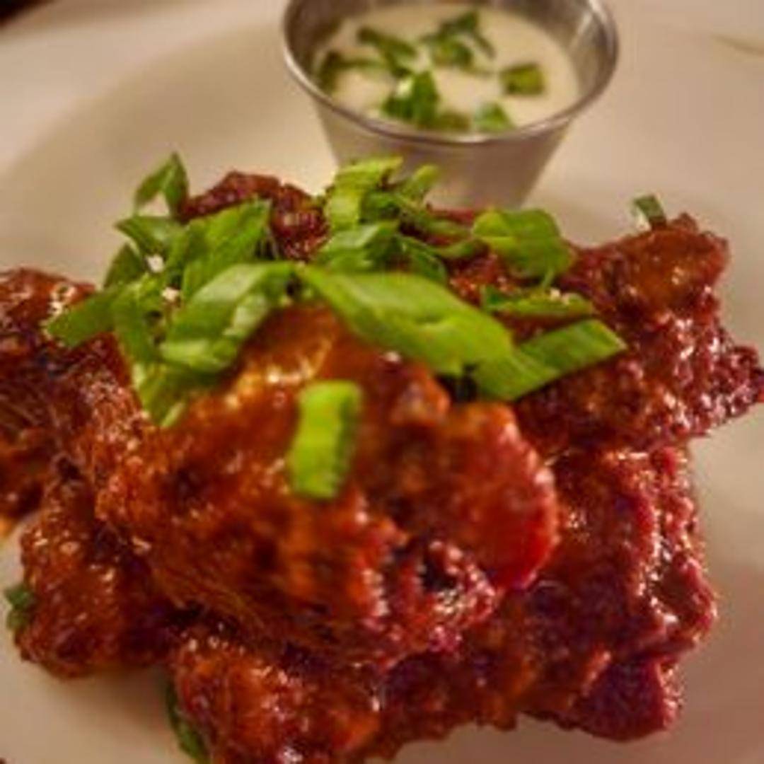 Juicy chicken wings marinated in a smoky chipotle sauce, then baked to perfection. Served with a side of cooling ranch dressing.