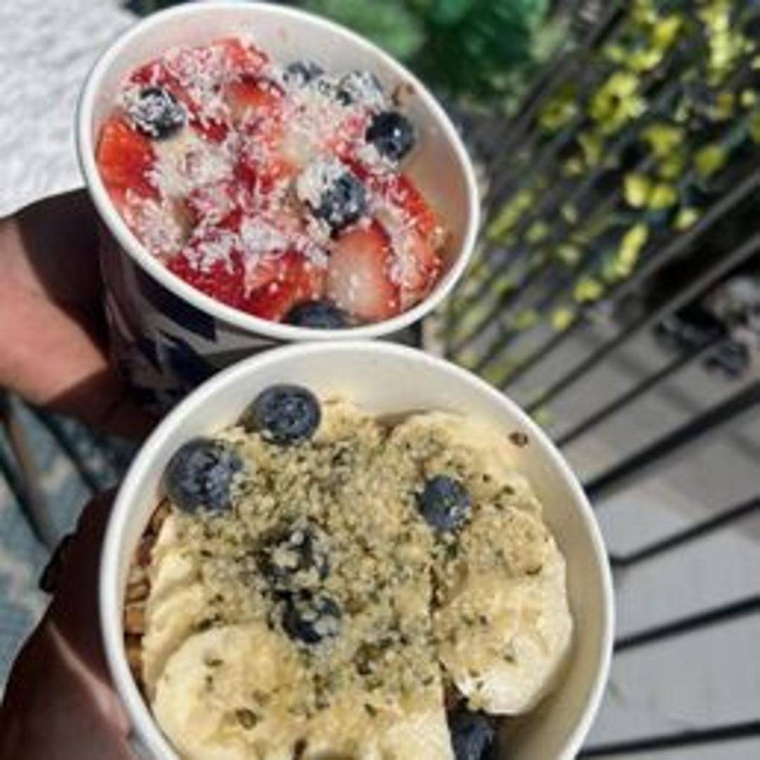 A tropical-inspired bowl with a base of coconut rice, topped with mango salsa, pineapple, avocado, and a creamy coconut dressing. Add grilled chicken or shrimp for extra protein.