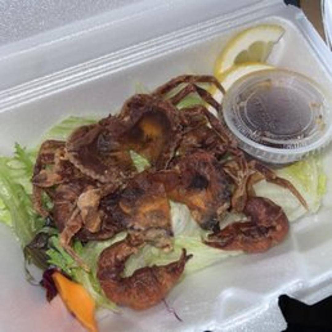 Lightly battered and deep-fried soft shell crab. Crispy and delicious.