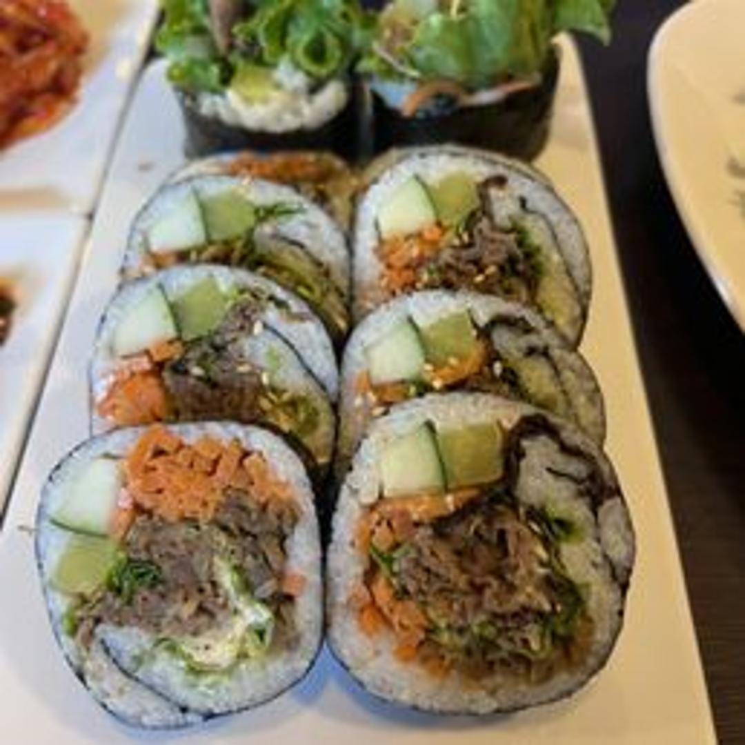 Korean seaweed rice rolls filled with marinated bulgogi (thinly sliced beef), pickled radish, spinach, carrots, and egg. A flavorful and portable meal.