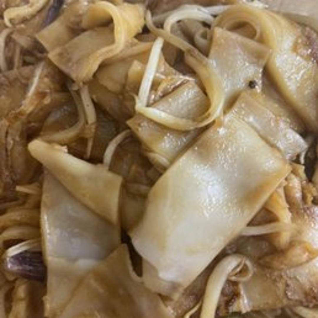 Wide, flat rice noodles stir-fried with tender chicken, bean sprouts, onions, and a savory sauce. A classic and flavorful Cantonese noodle dish.