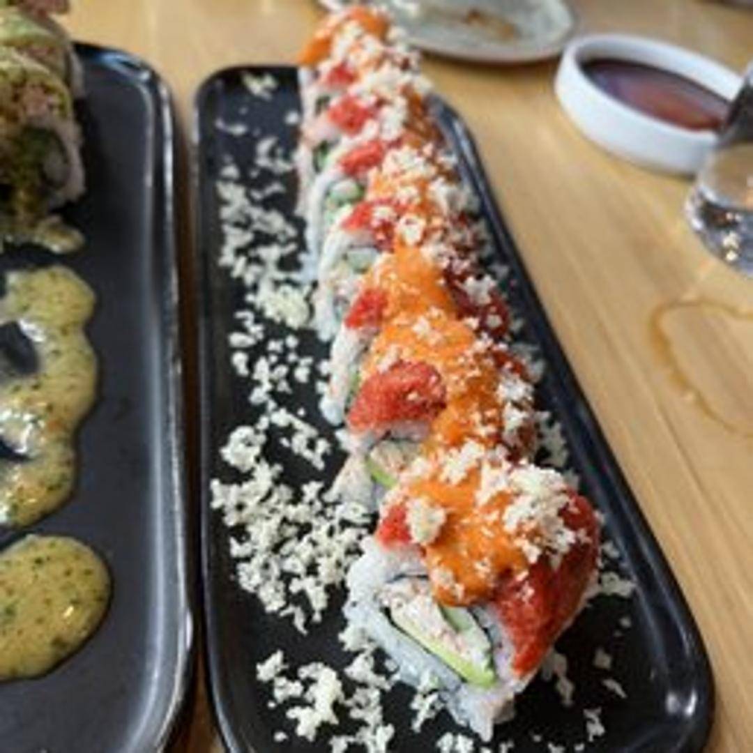 A colorful sushi roll with a bright and balanced flavor profile, evoking the hues of a sunset. (Specific ingredients may vary, check current menu for details).