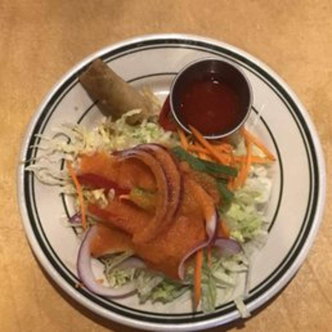 Crispy fried rolls filled with a delicious medley of fresh, seasoned vegetables, offering a satisfying crunch and savory flavor as a classic appetizer.