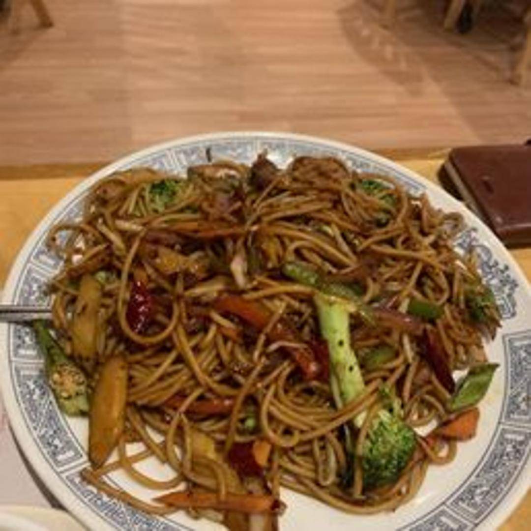 Classic stir-fried egg noodles tossed with a vibrant mix of fresh vegetables in a savory brown sauce, creating a hearty and satisfying dish.