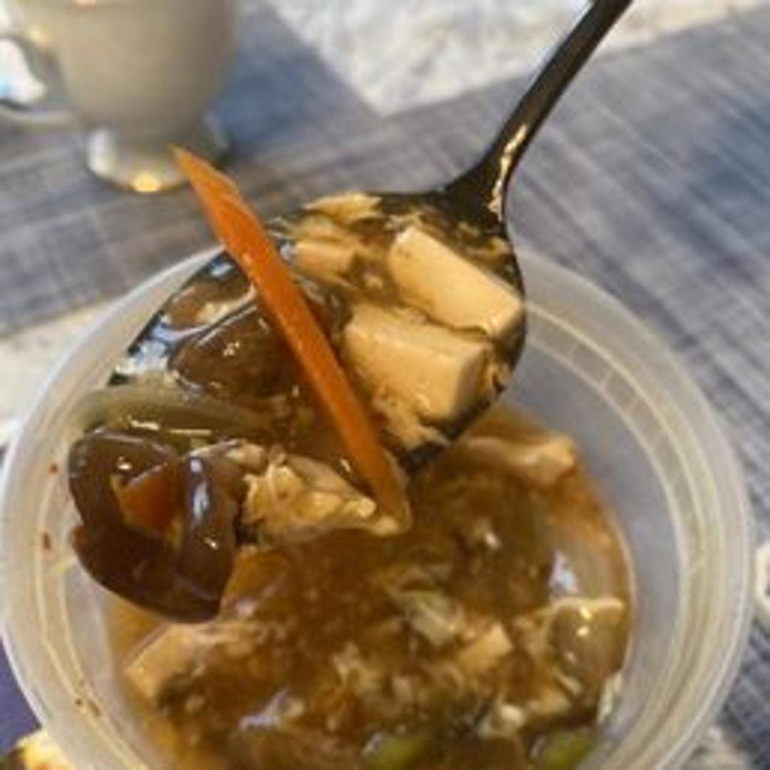 A comforting and zesty broth, meticulously balanced with tangy vinegar and a spicy kick of white pepper. This warming soup features tender shredded pork, silken tofu, earthy mushrooms, bamboo shoots, and delicate wisps of egg.