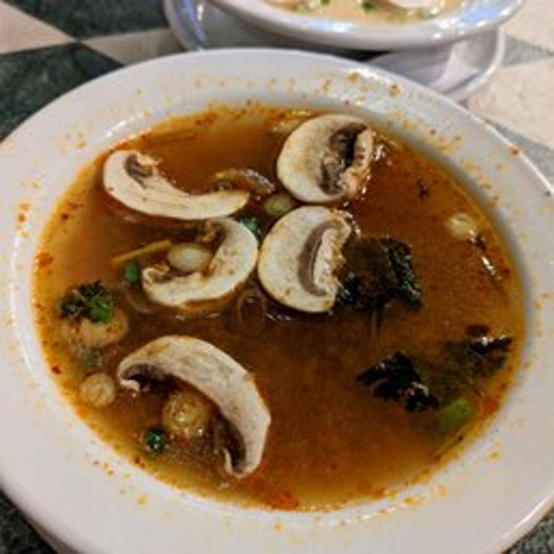 A classic hot and sour Thai soup, celebrated for its bold and aromatic essence. This invigorating broth is infused with lemongrass, galangal, kaffir lime leaves, fresh chilies, mushrooms, and lime juice, creating a harmonious symphony of spicy, sour, and savory flavors.