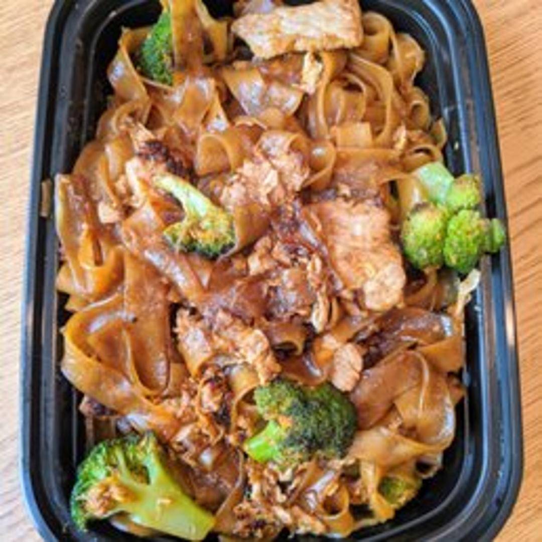 Savor the comforting and savory flavors of Pad See Ew, a popular stir-fried noodle dish. This dish features wide, flat rice noodles wok-fried with Chinese broccoli, a scrambled egg, and your preferred protein, all coated in a rich, dark, and slightly sweet soy sauce. The high-heat cooking creates a delicious caramelized exterior on the noodles, offering a deeply satisfying and subtly smoky taste.