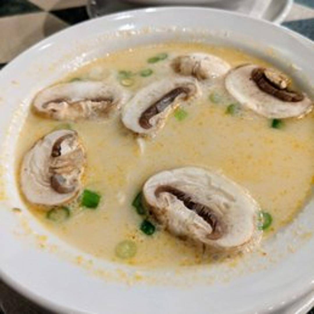 A classic and creamy Thai coconut soup, celebrated for its unique balance of sour, sweet, and mild spicy flavors. Made with a fragrant broth of coconut milk, galangal, lemongrass, kaffir lime leaves, and mushrooms, this warming soup offers a soothing and aromatic culinary experience, often enjoyed with chicken or vegetables.