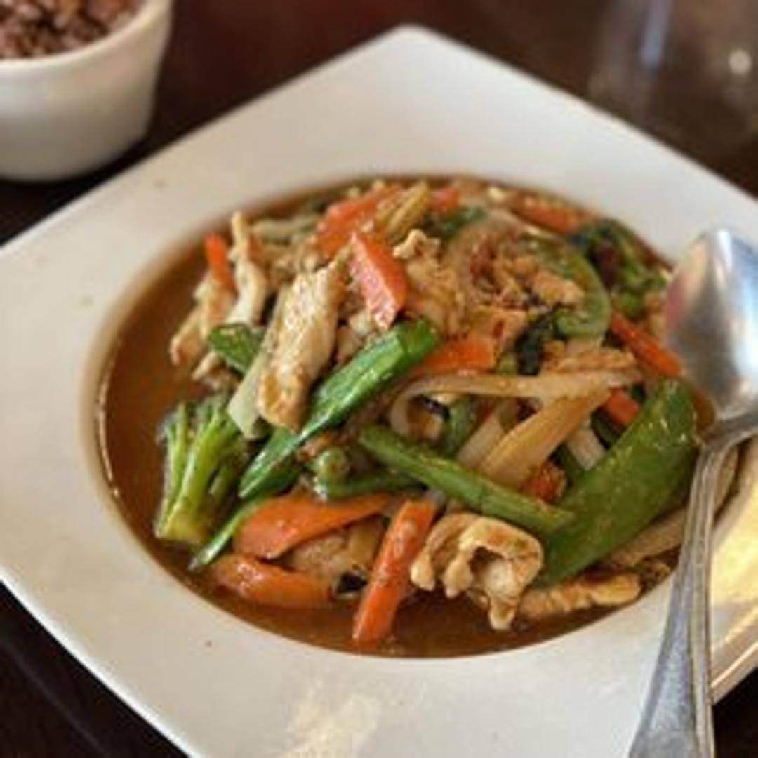 Experience the intense flavors of this authentic Thai stir-fry, featuring your choice of protein (commonly chicken, pork, or beef) wok-tossed with an abundance of fresh Thai chilies, pungent garlic, and the distinctive aroma of holy basil leaves. The dish is seasoned with a savory sauce, delivering a powerful and exhilarating spicy kick that is a hallmark of Thai street food.