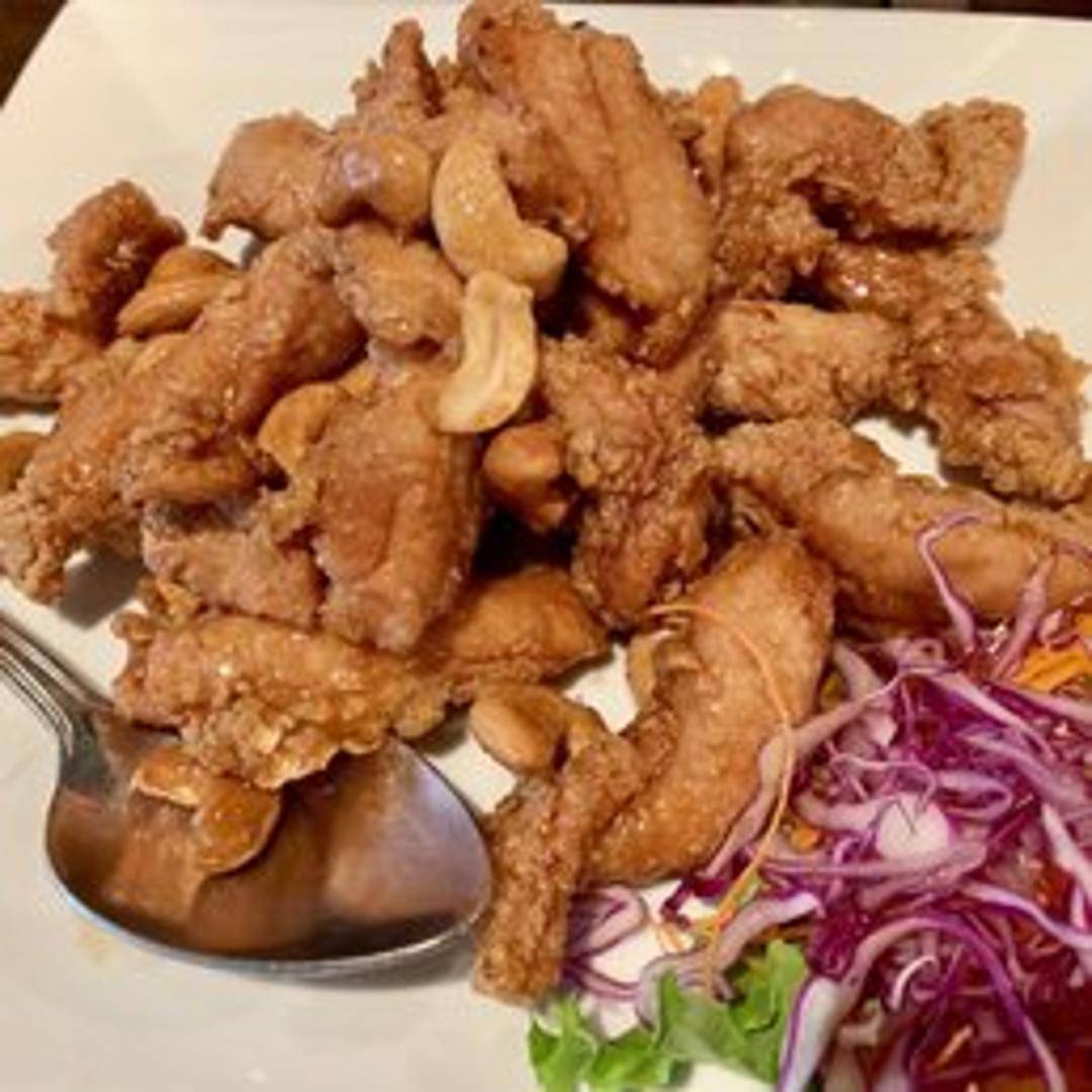 Tender pieces of chicken are expertly prepared to achieve a beautiful golden-brown crispness, offering a satisfying crunch with every bite. This dish is often pan-fried or lightly battered, served with a savory-sweet glaze or a side of delectable dipping sauce, making it a comforting and flavorful choice.