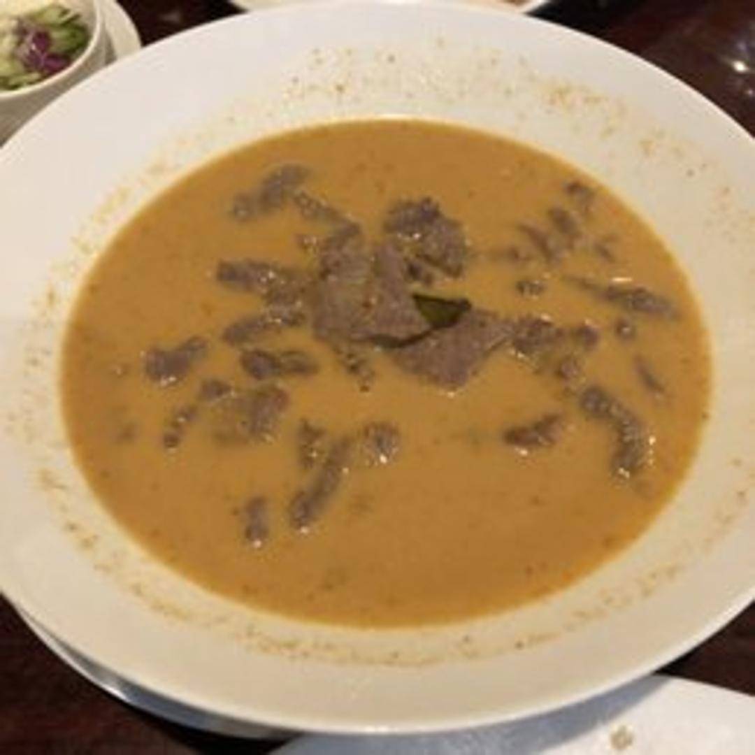 A rich and creamy Thai curry, simmered to perfection with your choice of protein in a luscious coconut milk base infused with authentic Panang curry paste. This aromatic dish offers a harmonious blend of savory, subtly sweet, and mildly spicy flavors, garnished with fresh bell peppers and fragrant kaffir lime leaves.