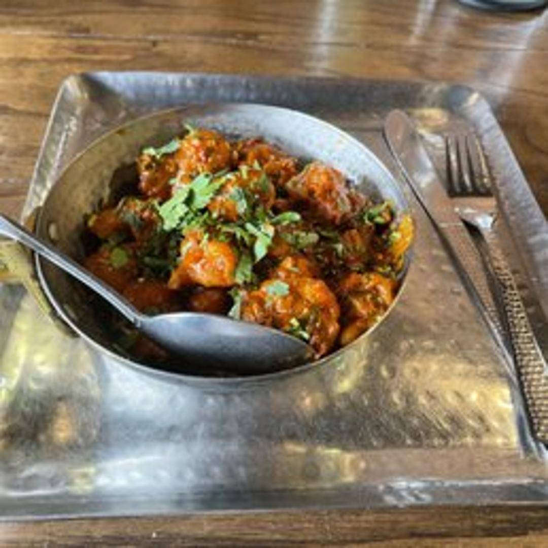 A flavorful vegetarian counterpart to Chicken 65, this dish consists of crispy cauliflower florets marinated in a spiced batter, deep-fried to a golden crisp, and then sautéed with a zesty mix of ginger, garlic, curry leaves, and chili, delivering a spicy and tangy kick.