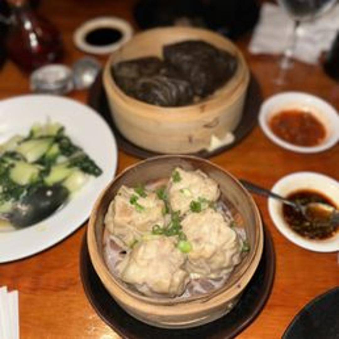 Open-topped steamed dumplings filled with a mixture of ground chicken, mushrooms, and aromatic seasonings. The filling is succulent and flavorful, encased in a delicate wonton wrapper. Often garnished with a small amount of crab roe or tobiko.