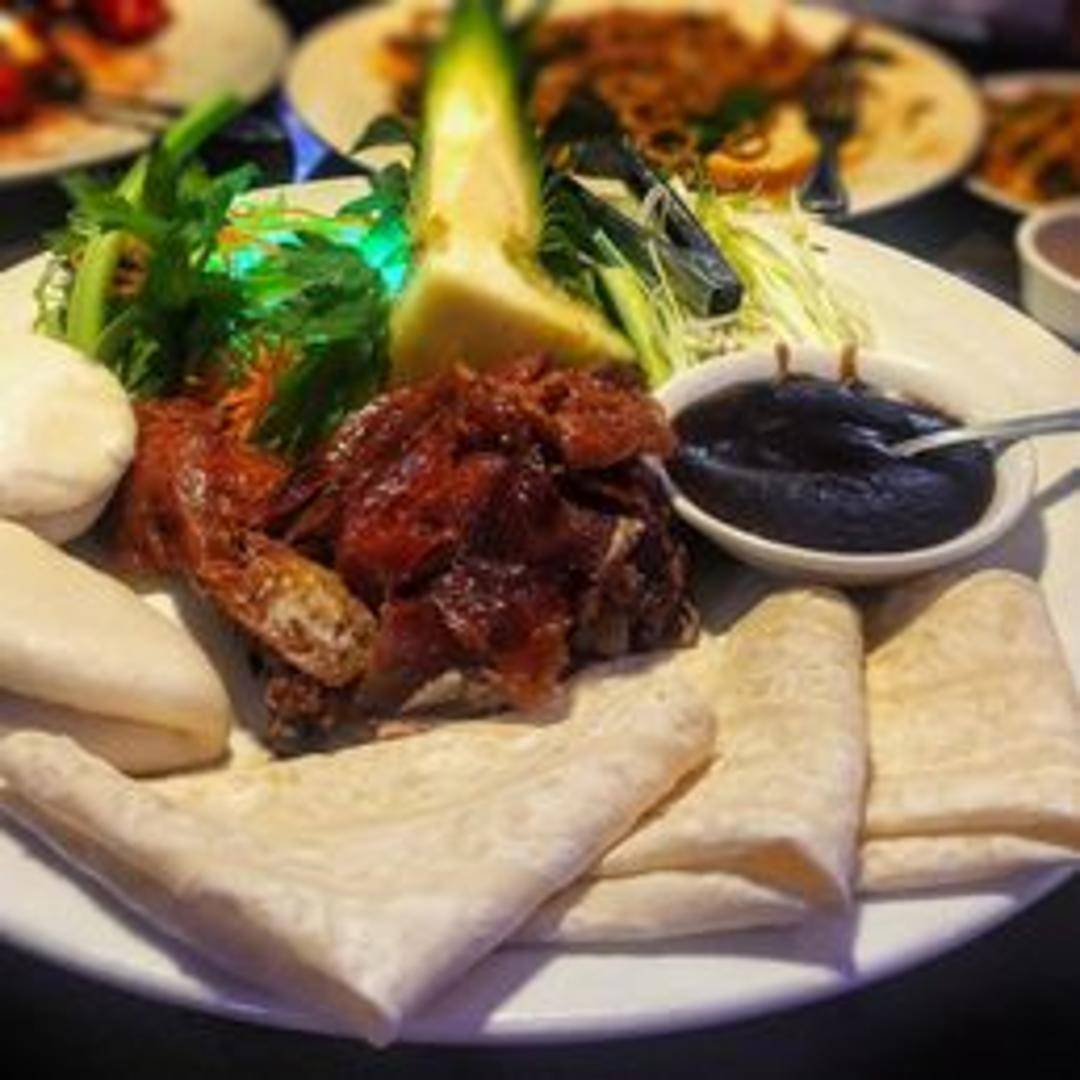 A signature culinary masterpiece, Beijing Duck features whole roasted duck with famously crispy, lacquered skin and tender, succulent meat. Traditionally carved tableside, it's served with delicate pancakes, fresh scallions, crisp cucumber sticks, and rich hoisin sauce for a customizable, authentic dining experience.