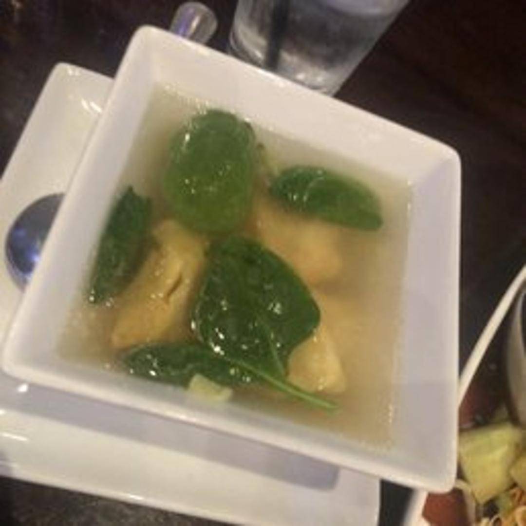 A comforting and classic Chinese soup featuring delicate wontons, typically filled with seasoned ground pork or shrimp, floating in a clear, flavorful chicken or pork broth. Garnished with fresh scallions and sometimes a sprinkle of white pepper, this soup is a light yet satisfying starter, perfect for warming the soul.