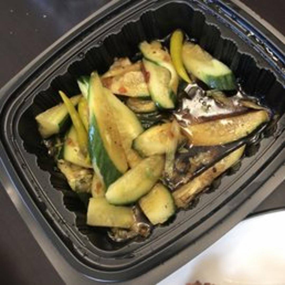 A classic and refreshing appetizer featuring crisp, cool cucumber slices, often lightly smashed or expertly cut to absorb flavor. These vibrant green cucumbers are typically tossed in a savory and tangy dressing, frequently infused with garlic, a touch of vinegar, and sometimes a hint of chili oil for a subtle kick. It offers a clean, palate-cleansing bite, perfect for starting a meal.