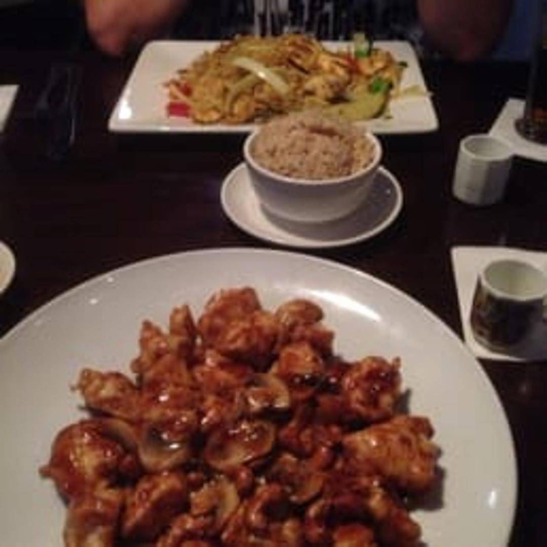 A vibrant and aromatic stir-fried noodle dish, featuring thin rice vermicelli infused with fragrant curry powder. This savory creation is tossed with tender shrimp, slices of barbecued pork (char siu), chicken, and a medley of crisp vegetables like bell peppers, onions, and bean sprouts, offering a delightful balance of flavors and textures.