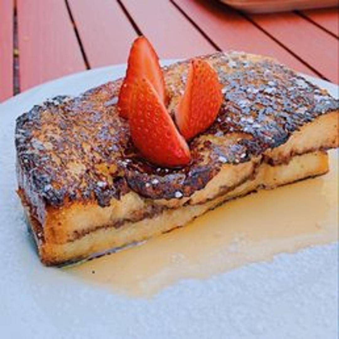 Indulge in a sweet treat with our Nutella French Toast. Thick slices of bread are dipped in a rich egg batter, pan-fried to a golden perfection, and generously slathered with creamy hazelnut Nutella, creating a delightful dessert or brunch item.