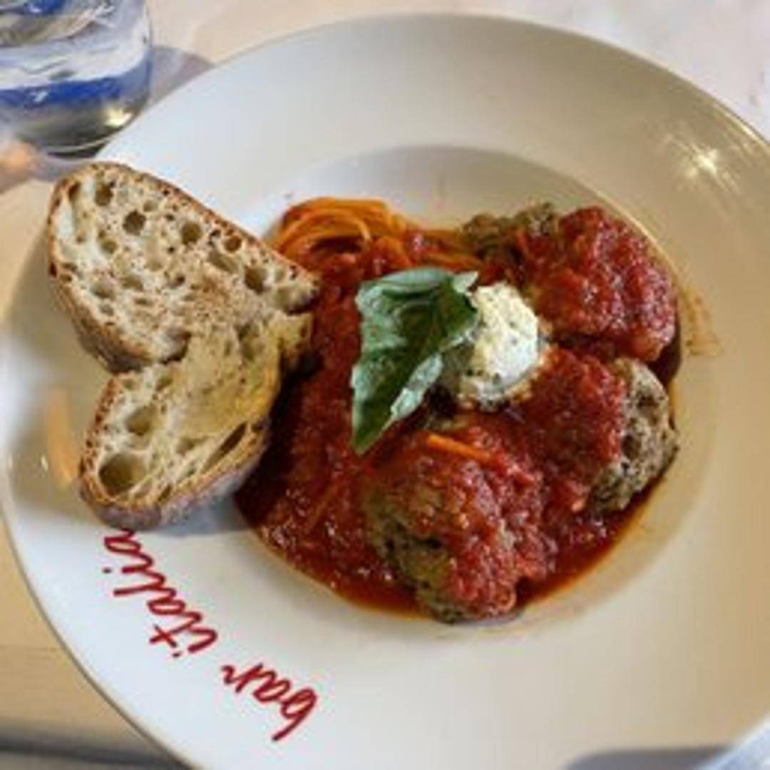 A cherished Italian-American comfort dish, featuring al dente spaghetti generously coated in our slow-simmered, rich marinara sauce, accompanied by a single, tender, savory homemade meatball.