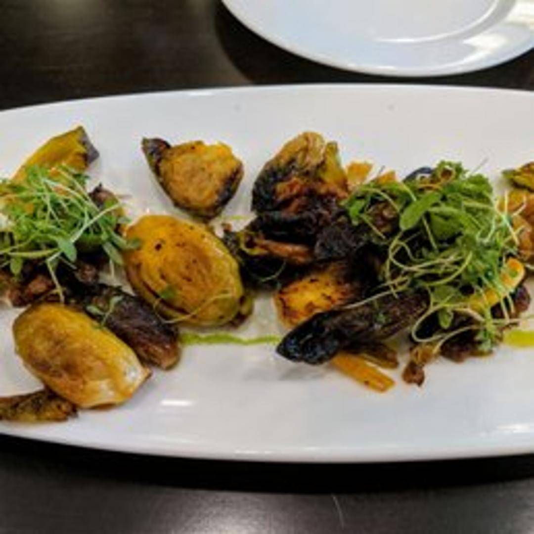 Fresh Brussels sprouts expertly prepared to achieve an irresistible crispness. Roasted or fried to a golden perfection, these sprouts are often tossed with complementary flavors like a savory glaze, smoky bacon, or toasted nuts, transforming a humble vegetable into a craveable dish.
