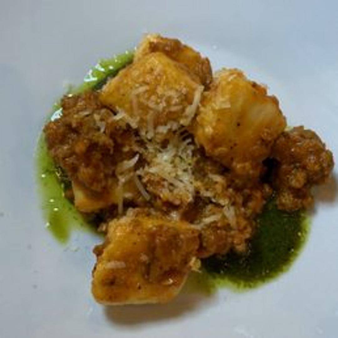 Pillowy, house-made potato gnocchi, incredibly light and tender, generously coated in a deeply flavorful, slow-simmered Bolognese sauce made with premium meats, aromatic vegetables, and rich tomatoes for a truly satisfying and classic dish.