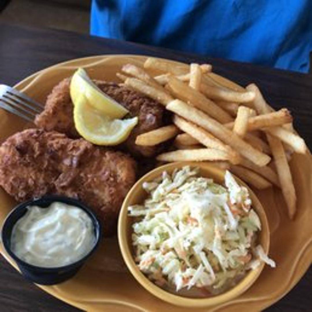 Flaky cod fillets battered and deep-fried to a golden brown. Crispy on the outside, tender and moist on the inside. Served with tartar sauce and lemon wedge.