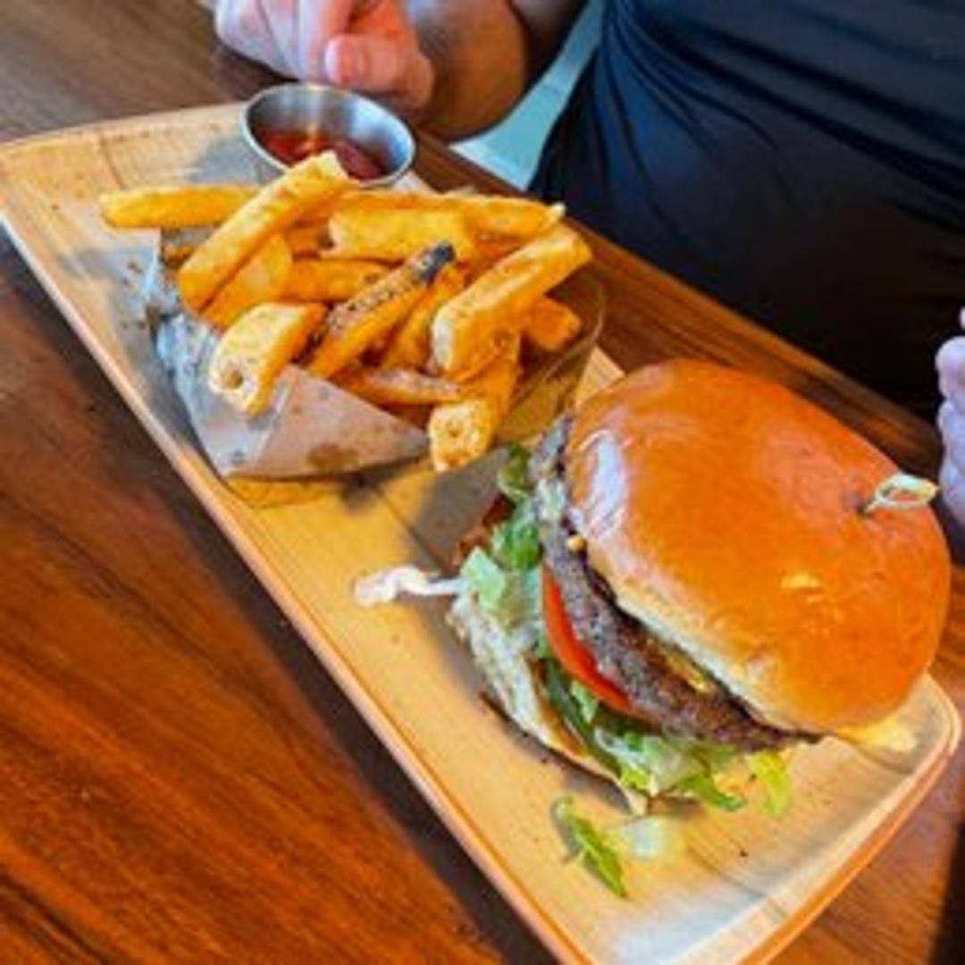 A classic done right, the Pub Burger boasts a juicy, premium beef patty cooked to your liking, topped with sharp cheddar cheese, crispy bacon, fresh lettuce, vine-ripened tomato, and red onion, all served on a toasted brioche bun. A hearty staple perfect for any appetite.