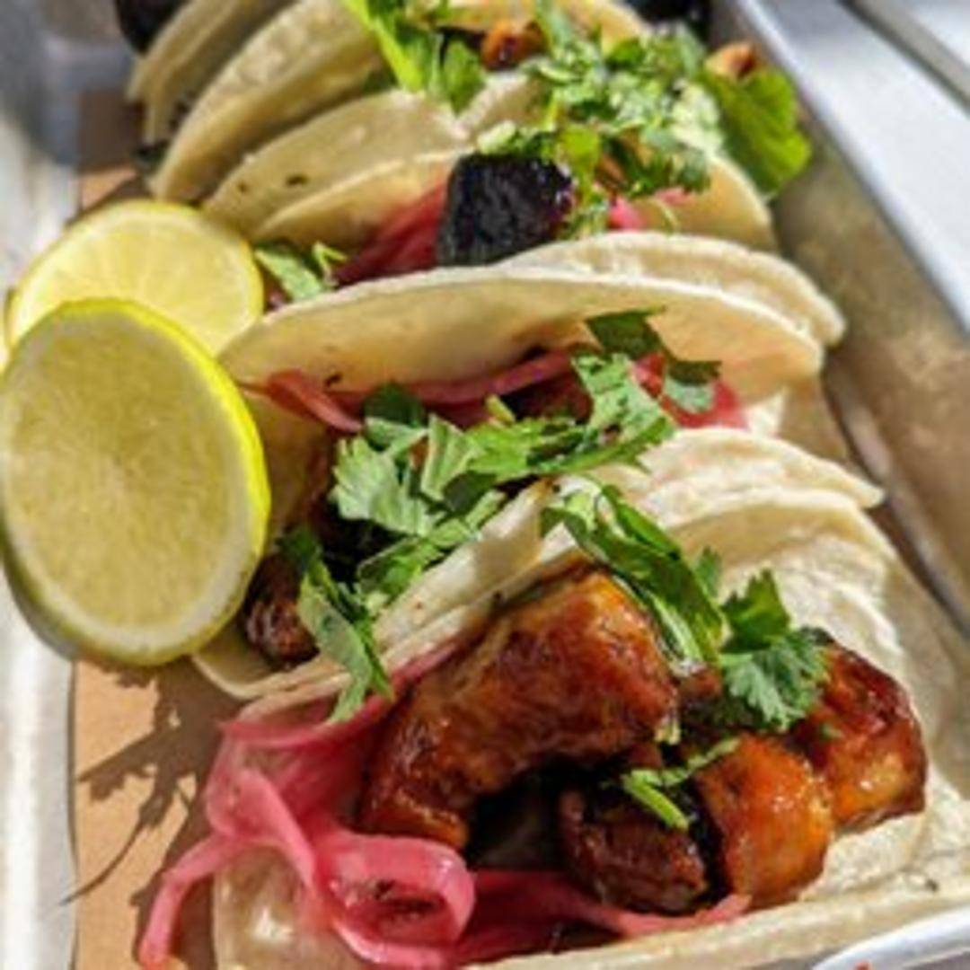 Slow-roasted pork belly glazed with a sweet and savory sauce, served on a warm corn tortilla. Topped with pickled red onions and cilantro.