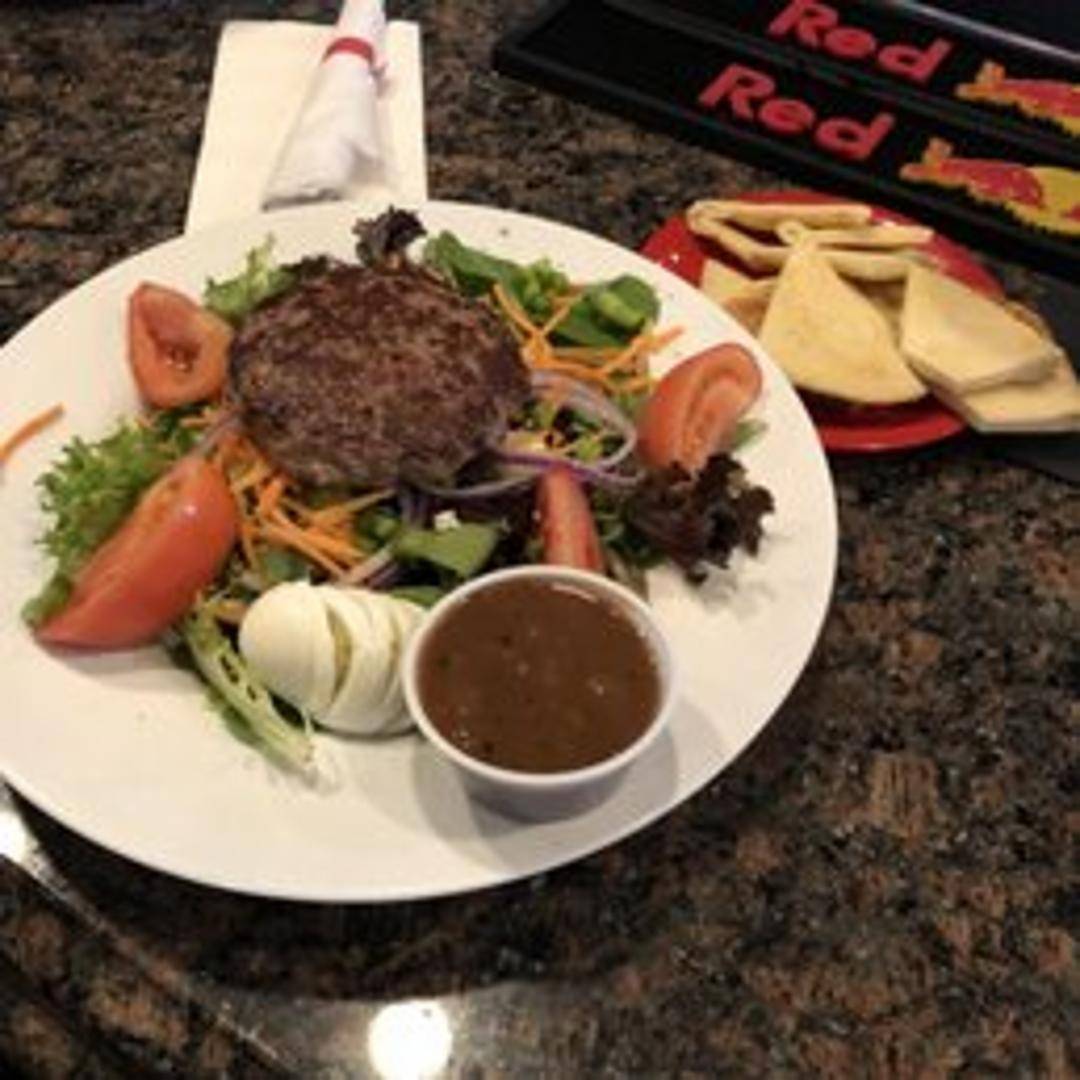 A lean and flavorful ground bison patty, grilled and served on a bun with your choice of toppings.
