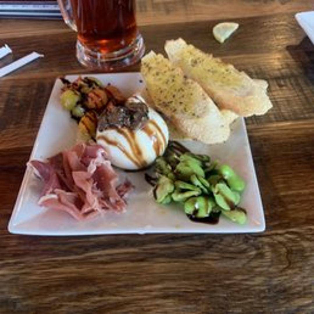 Creamy, fresh burrata cheese served with a drizzle of olive oil and a sprinkle of sea salt. Often accompanied by fresh basil and crusty bread.