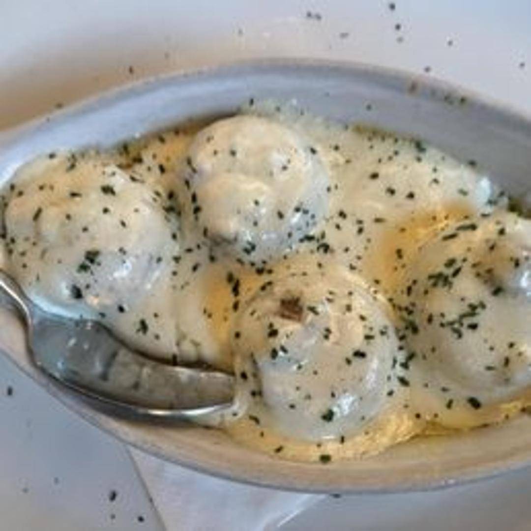 Large mushroom caps filled with a savory blend of herbs, cheeses, and breadcrumbs, baked until golden brown.
