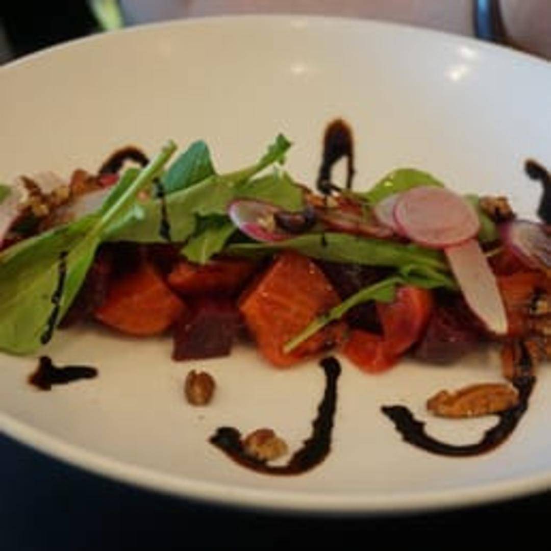 A vibrant symphony of earthy flavors, our Beet Salad features a medley of roasted and pickled beets, fresh arugula, and crumbled chèvre. Drizzled with a zesty citrus vinaigrette and garnished with candied walnuts, it's a refreshing and colorful composition that delights the palate.