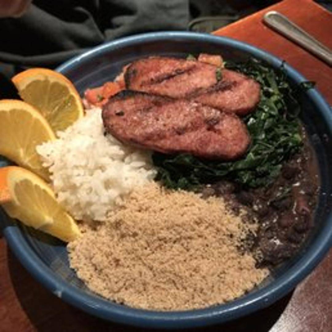 A quintessential Brazilian national dish, Feijoada is a hearty and deeply flavorful stew made with black beans and a variety of salted and smoked pork and beef meats, traditionally including items like smoked sausage, bacon, and dried beef. Slow-cooked to perfection, this robust and comforting meal allows all the rich flavors to meld. It is typically served with white rice, farofa (toasted cassava flour), sautéed collard greens, and sliced oranges, offering an authentic taste of Brazil.