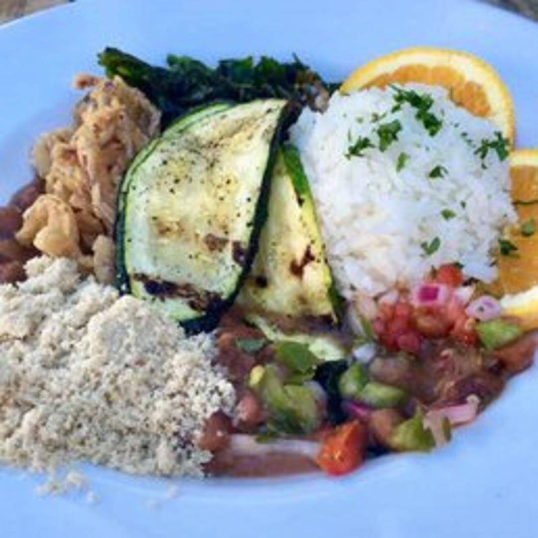 A thoughtfully curated mixed plate designed for the vegetarian palate, offering a diverse array of fresh, vibrant, and flavorful plant-based components. This wholesome ensemble typically includes a selection of seasoned rice, hearty beans, sautéed vegetables, fresh salads, and other rotating vegetarian delights, providing a comprehensive and satisfying taste of Brazil's culinary breadth without meat.