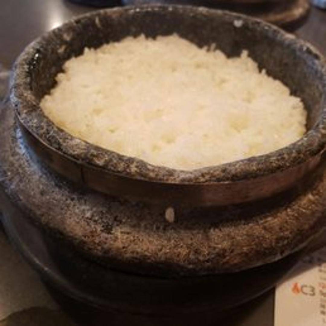 Steamed white rice served in a hot stone pot, creating a slightly crispy crust on the bottom. Often used to enjoy tofu stew or other Korean dishes.