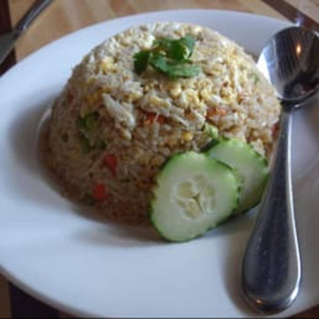 Savor our exquisite Crab Fried Rice, a classic Thai favorite. Fragrant jasmine rice is wok-fried to perfection with succulent lumps of fresh crab meat, scrambled eggs, crisp green onions, and a touch of savory seasoning. Each grain of rice is infused with the delicate sweetness of the crab, creating a harmonious blend of textures and flavors that is both satisfying and light.