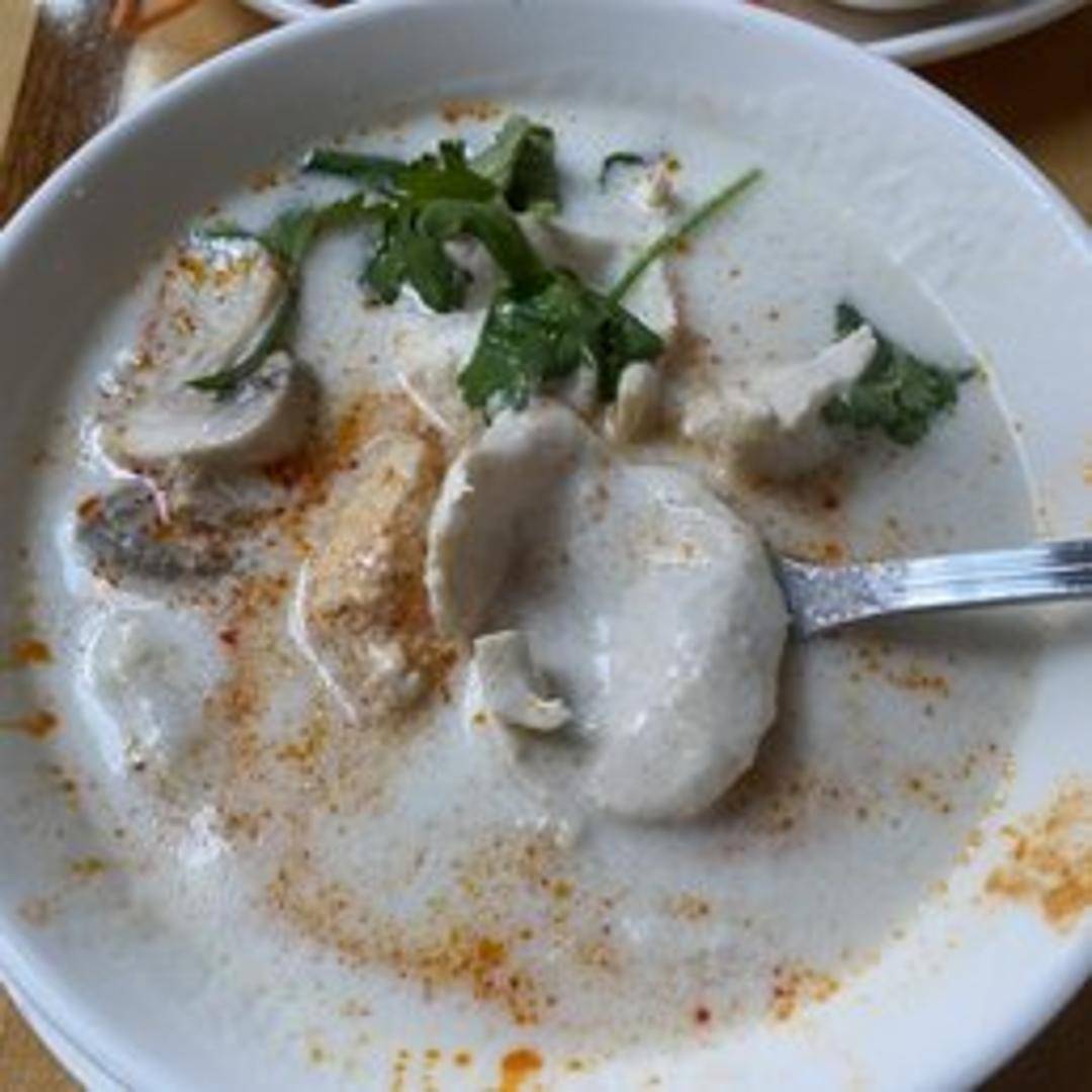 Experience the comforting warmth of our aromatic Tom Kha Soup. This classic Thai coconut milk soup is infused with fragrant galangal, lemongrass, kaffir lime leaves, mushrooms, and your choice of protein, creating a creamy, tangy, and subtly spicy broth that's both soothing and flavorful.