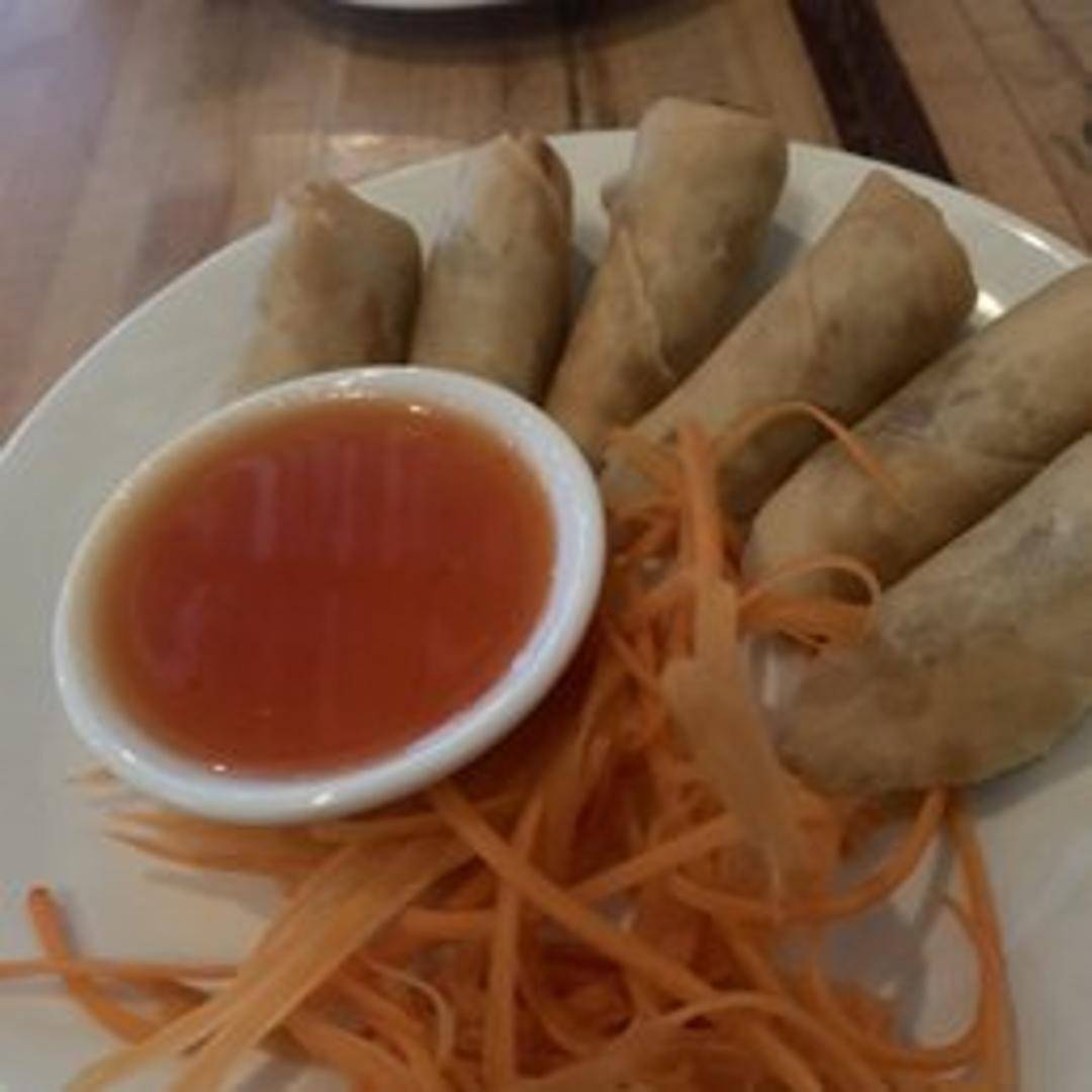 Crispy fried rolls filled with a savory mixture of glass noodles, shredded cabbage, carrots, and sometimes minced chicken or shrimp. These golden-brown appetizers offer a delightful crunch and a warm, flavorful interior, typically served with a side of sweet chili or plum dipping sauce for a balanced taste experience.