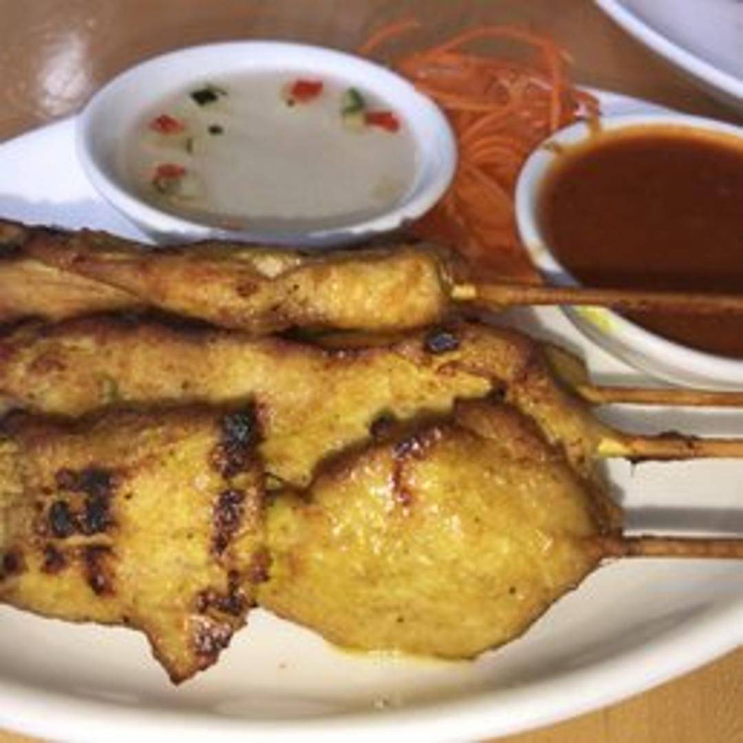 Savor the beloved Chicken Satay, featuring tender strips of marinated chicken expertly grilled on skewers to a perfect char. Each succulent piece is bursting with flavor and served with our rich, creamy peanut sauce and a refreshing cucumber relish for an authentic Thai culinary experience.