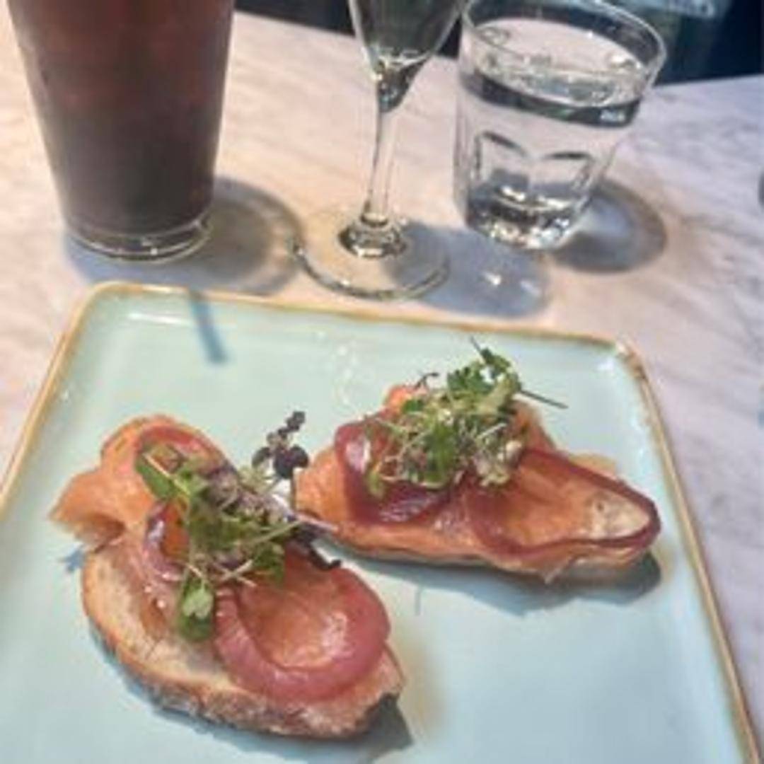 Delicate slices of sustainably sourced smoked salmon atop crisp, toasted crostini. Each bite offers a delightful balance of smoky and savory flavors, enhanced by a light spread of herbed cream cheese and a sprinkle of fresh dill. A perfect appetizer or light snack.
