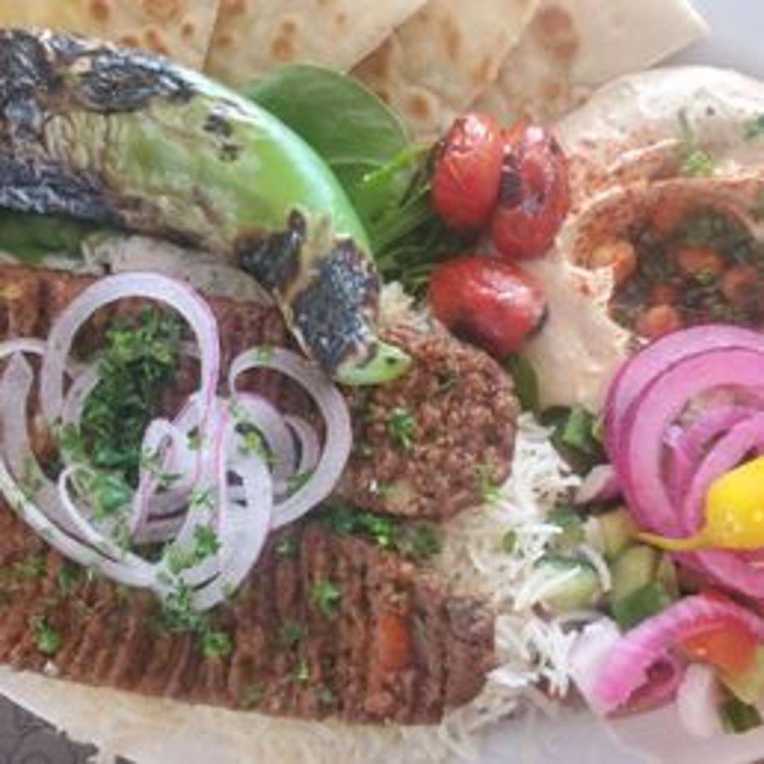 Tender and juicy lamb kebab skewers, marinated in a blend of Middle Eastern spices and grilled to perfection. Served with a side of fluffy rice or couscous, grilled vegetables, and a creamy tzatziki sauce. Garnished with fresh herbs.
