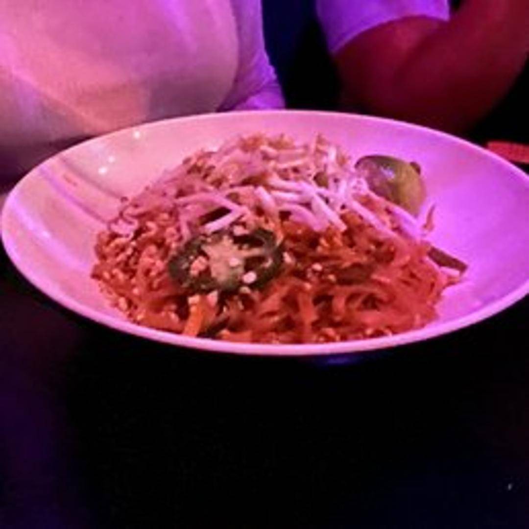 Savor the iconic flavors of our authentic Pad Thai. This beloved dish features stir-fried rice noodles tossed with scrambled egg, bean sprouts, and scallions in our signature sweet and tangy tamarind-based sauce. Garnished with crushed peanuts and a wedge of lime, it offers a harmonious blend of textures and tastes.
